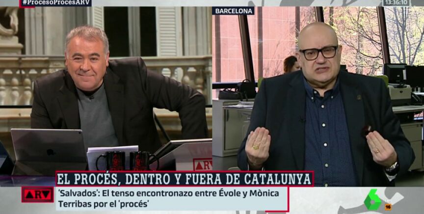 Jordi Évole y la periodista de Catalunya Ràdio Mònica Terribas protagonizaron un tenso momento durante el Salvados 'Cuestión de relato'. El periodista de laSexta preguntó a Terribas si se siente engañada con lo que están defendiendo los acusados en el juicio del 'procés'.