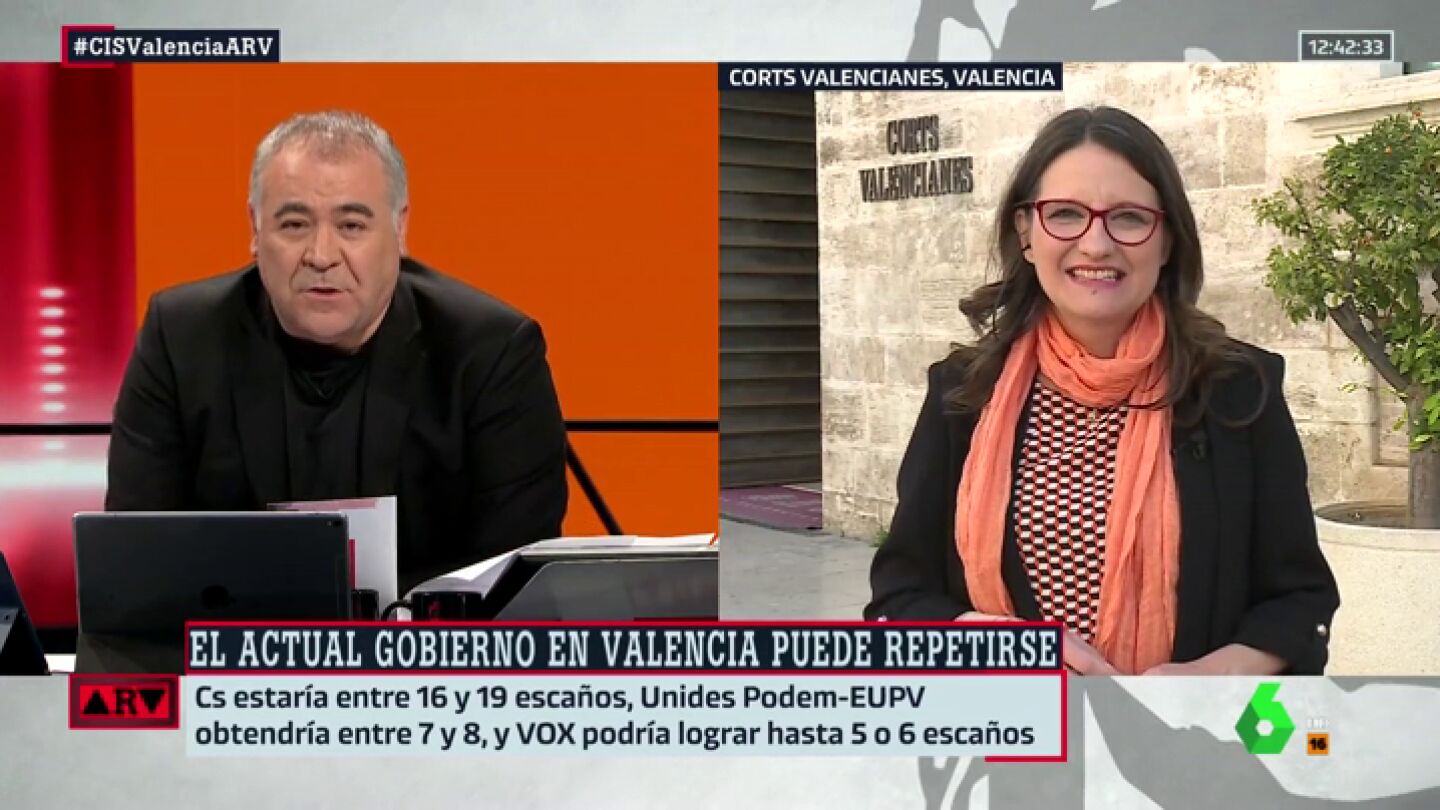 La izquierda podría conservar el Gobierno en la Comunitat Valenciana, según el barómetro del CIS. La vicepresidenta de la Comunitat Valenciana, Mónica Oltra, se muestra satisfecha e insiste en que el cambio político tiene que continuar.