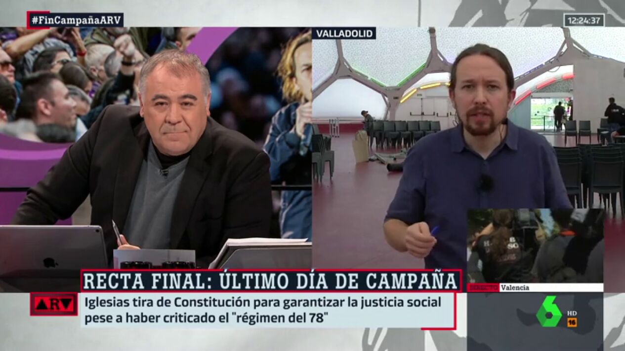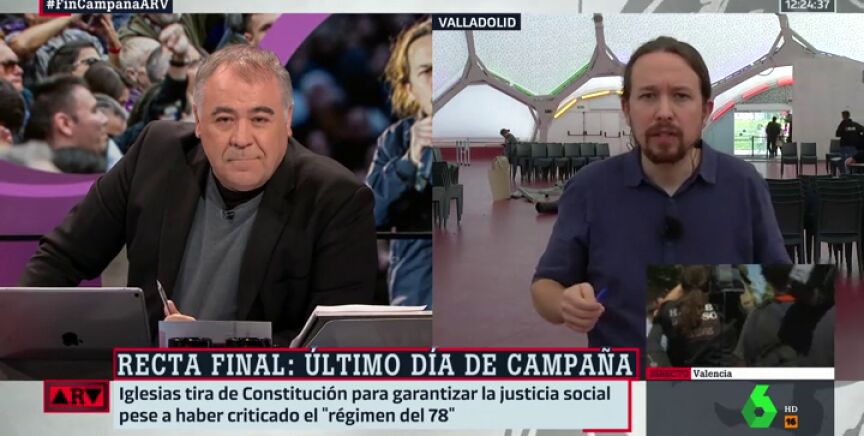 El líder de Unidas Podemos pide desde Al Rojo Vivo a los españoles que "no se confíen y vayan a votar el 28A" y critica que "Vox está haciendo bailar a sus son a PP y Ciudadanos".