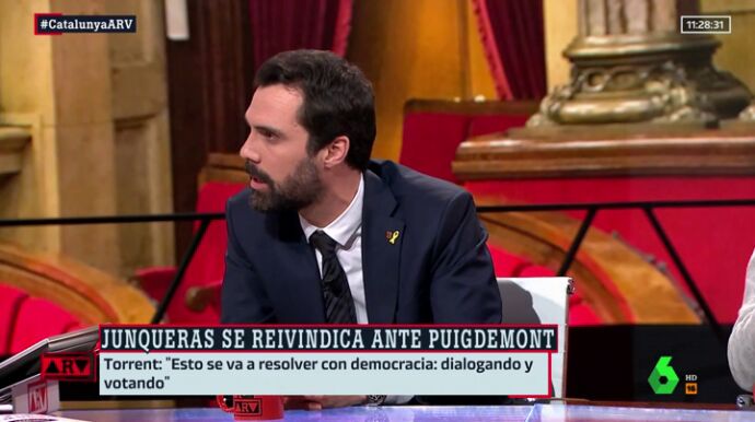 Roger Torrent, presidente del Parlament de Catalunya, sostiene que la solución al conflicto catalán llegará por las urnas. "Todo el mundo sabe que se acabará votando", ha señalado Torrent en Al Rojo Vivo.