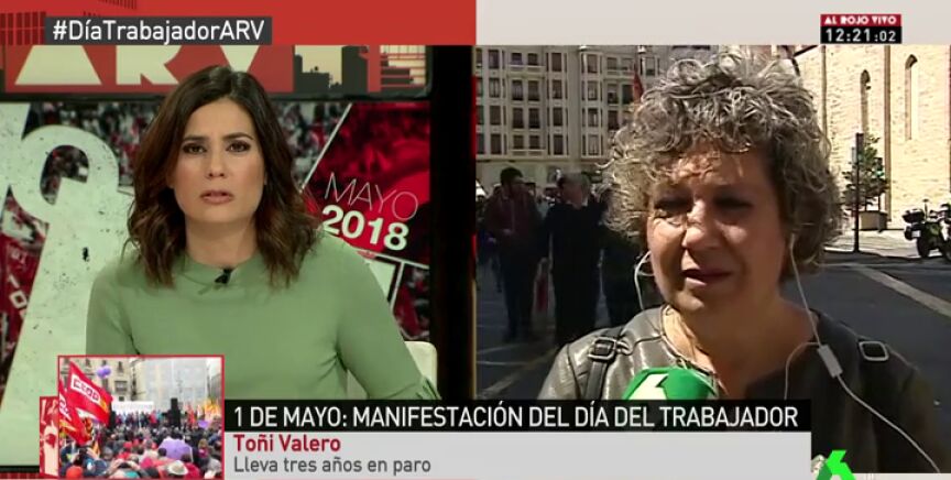 "Es una pena. No me esperaba que al final de mi vida laboral estuviera en paro y necesitando la ayuda de mi hijo", afirma Toni Valero, una mujer de 57 años que lleva tres años en paro. Toñi, que vive con un subsidio de 430 euros, denuncia en el Día del Trabajo que se limite tanto el acceso a la vida laboral a las mujeres mayores.