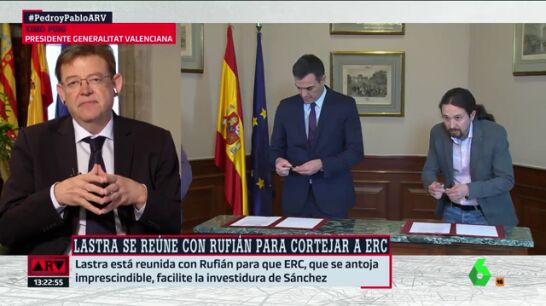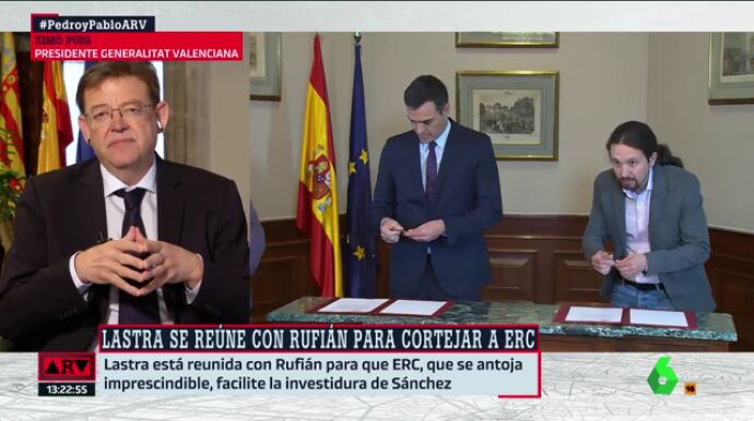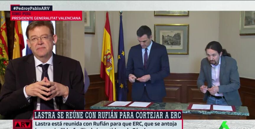 Al president de la Generalitat Valenciana, el socialista Ximo Puig, le gusta el preacuerdode gobierno entre el PSOE y Unidas Podemos que, cree, "es positivo para España". "Más vale tarde que nunca", ha señalado en Al Rojo Vivo, donde ha defendido que "es lo que había que hacer y había que hacerlo rápidamente".