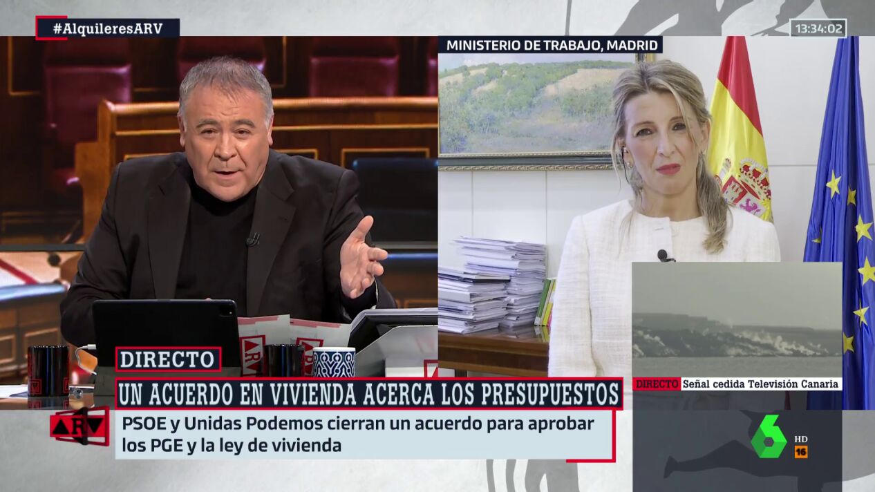 Yolanda Díaz ha intervenido en Al Rojo Vivo tras el principio de acuerdo alcanzado entre Unidas Podemos y PSOE para los Presupuestos Generales del Estado. La vicepresidenta ha asegurado que, a pesar de que finalmente se ha incluido la Ley de Vivienda en las cuentas, no era una línea roja de Podemos.