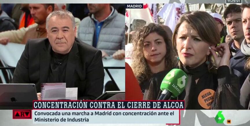 La diputada de En Marea Yolanda Díaz pide en este vídeo de Al Rojo Vivo que el Gobierno y el Ministerio de Industria intervengan para "no dejar tirados a los trabajadores de Alcoa".