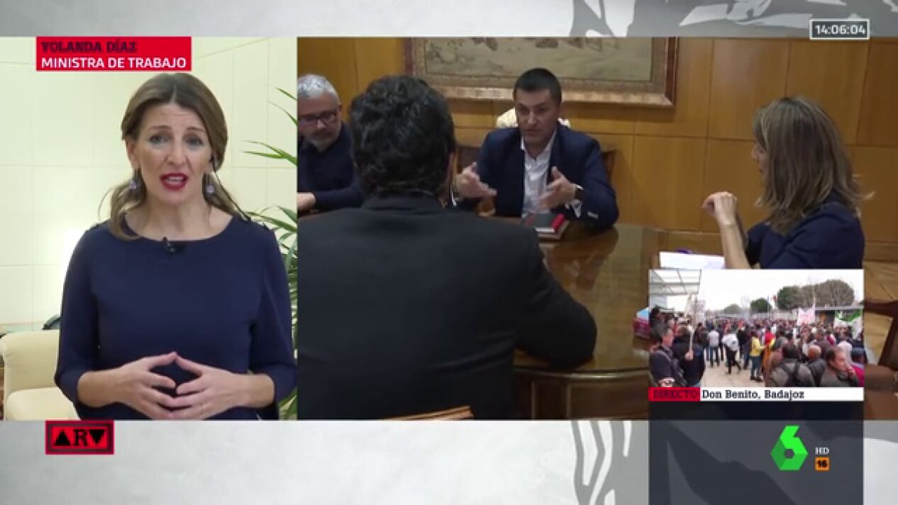 "El trabajo agrario y la industria agrícola en nuestro país es muy relevante", ha concluido Díaz, que ha señalado que este sector, que está protagonizando protestas en Extremadura, tiene "problemas estructurales severos". "Esta ministra se solidariza con el mundo del campo", ha añadido, asegurando que el Gobierno abordará esos problemas.