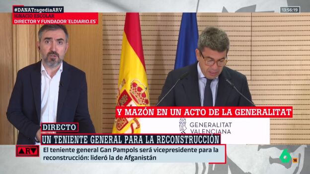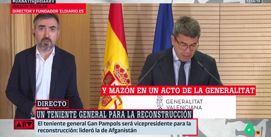 Tras el nuevos cambios realizados por Carlos Mazón en la Generalitat Valenciana, tras la tragedia de la DANA de Valencia, Ignacio Escolar, periodista y director de elDiario.es, señala que "es evidente que por mucho que refuerce el gobierno, el problema no es el equipo -que también, porque ha habido muchos fallos- sino que el problema fundamental es lo que hizo Mazón el día de la DANA".
