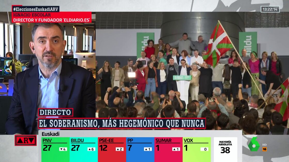 Las encuestas se han cumplido en las elecciones del País Vasco y tanto Bildu como PNV han empatado en escaños, aunque PNV ha sido finalmente quien más votos ha obtenido. Unos resultados que para el periodista Ignacio Escolar , no son precisamente fruto de una "reacción soberanista".