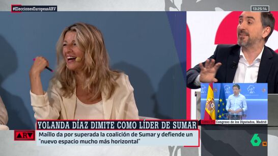 Y han aceptado -tal como continúa contando Escolar- un entendimiento de que Yolanda Díaz haga su proceso en el partido y por otro lado, ver cómo se gestiona la coalición pero ya sin Yolanda Díaz de primus inter pares. "Y por eso es ahí, donde dice Maillo (IU) que el Sumar de antes está muerto y que hace falta algo más horizontal".