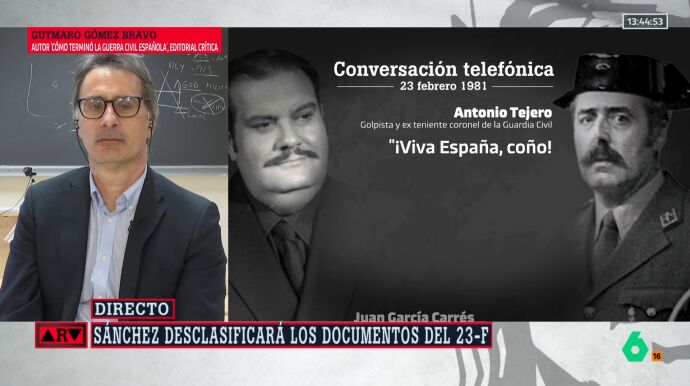 El historiador Gutmaro Gómez Bravo, autor de 'Cómo terminó la Guerra Civil española', ha celebrado en Al Rojo Vivo la desclasificación de los documentos relacionados con el 23-F, una medida que, a su juicio, supone un avance decisivo para la investigación histórica.