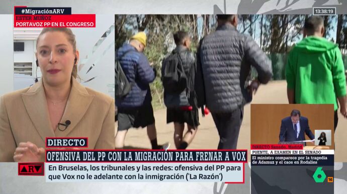 Ester Muñoz ha explicado la postura del Partido Popular sobre la regularización de migrantes en Al Rojo Vivo, destacando que, aunque entiende que haya personas que quieran llevarlo "al debate humanitario", ellos defienden que las cosas hay que hacerlas "con orden, dentro de la ley y sin generar caos".