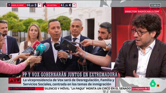 El director de 'radiocable.com' advierte sobre el pacto entre PP y Vox en Extremadura y su posible impacto nacional: "Es un sapo, pero el primero". Considera el acuerdo un "laboratorio" de lo que podría trasladarse a la política española.