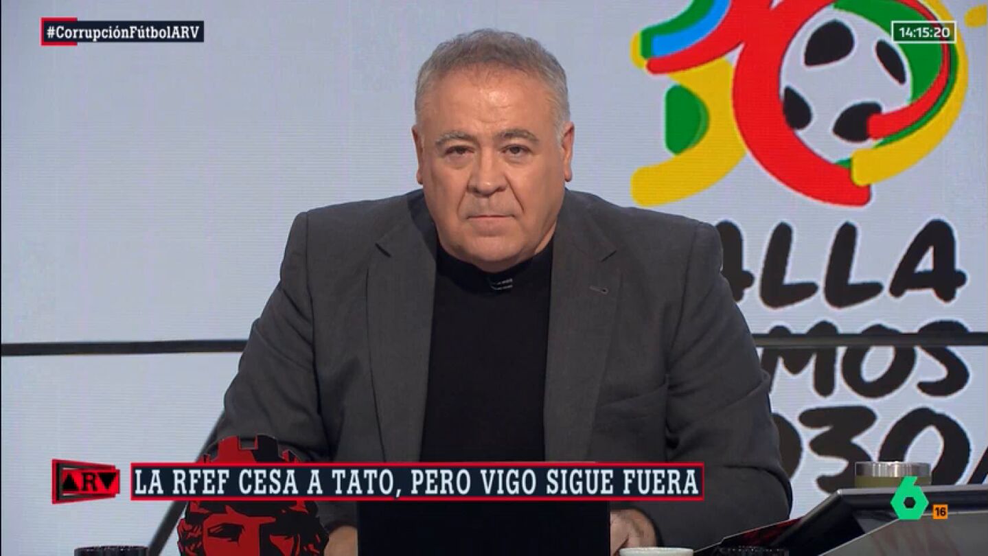 "Ya podemos incluir un lema más a la RFEF: 'Corrupción en la federación' y, ahora, 'manipulación en la federación'. Lo suelen hacer con los arbitrajes...", responde Antonio García Ferreras tras escuchar sus explicaciones en la Cadena SER.