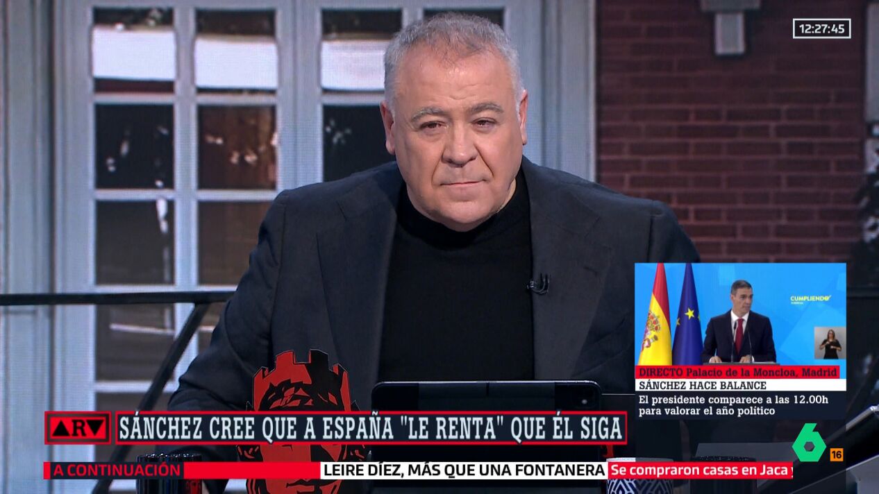 El director y conductor de Al Rojo Vivo ha analizado el balance de fin de año de Pedro Sánchez, en el que aseguró que a la ciudadanía "le renta" un Ejecutivo progresista, y ha señalado que el foco del debate se desplaza ahora hacia sus socios de Gobierno.
