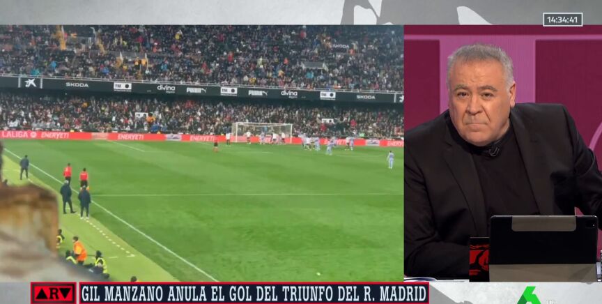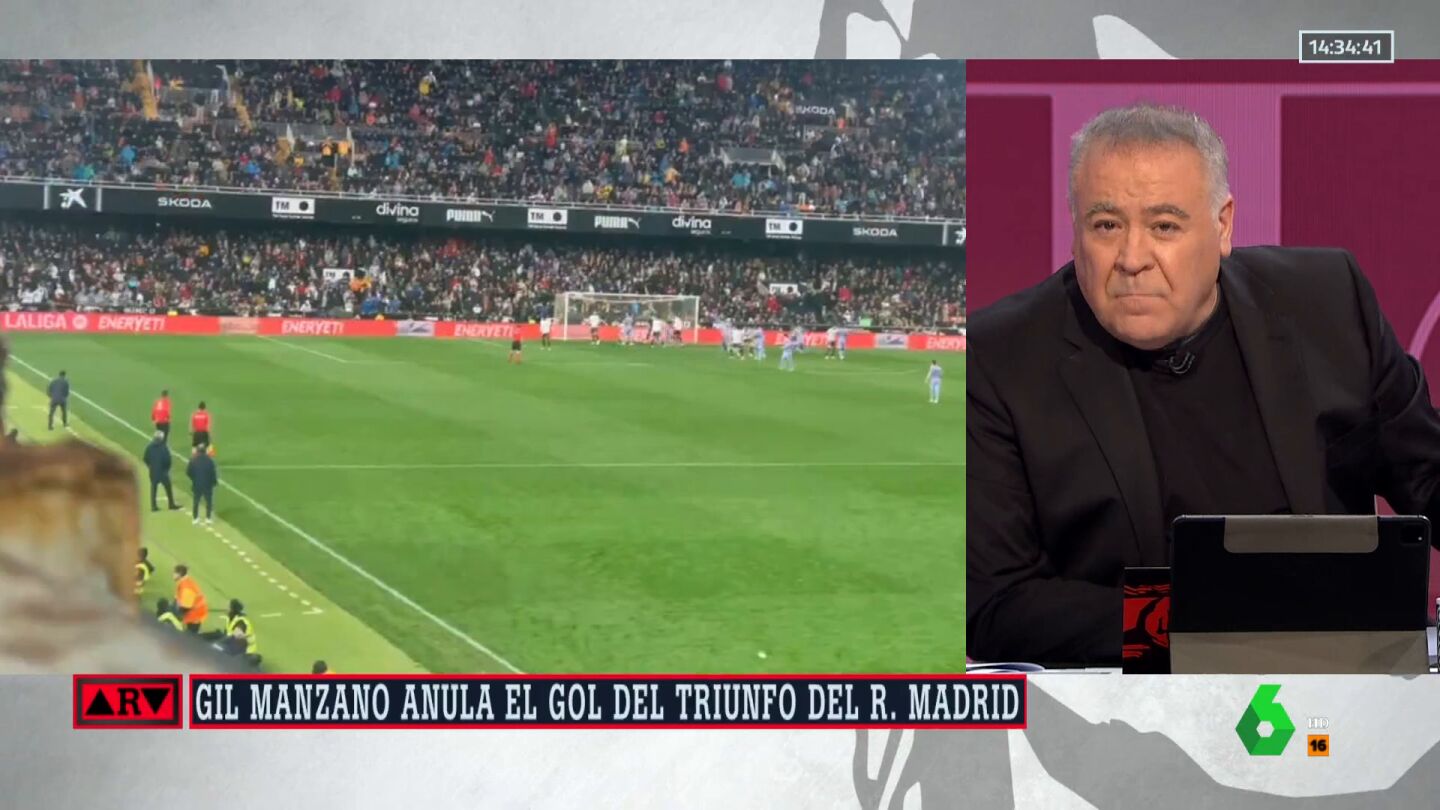 Antonio García Ferreras ha criticado la actuación de Gil Manzano en Mestalla durante el partido entre el Valencia-Real Madrid, después de que pitase el final justo cuando Jude Bellingham había rematado a gol un centro de Brahim, haciendo que el tanto no subiese al marcador.