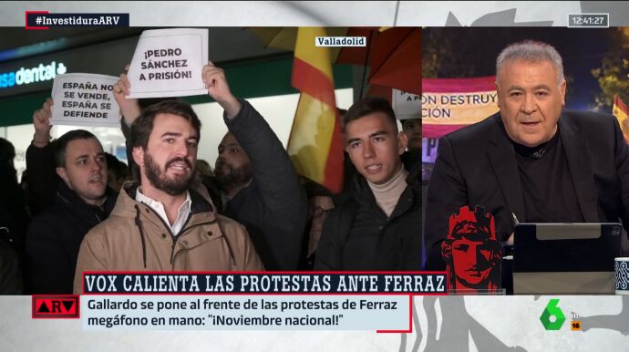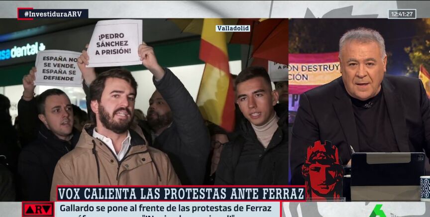 Antonio García Ferreras ha reaccionado de forma contundente al ver a García-Gallardo acudir a las protestas que se han realizado estos días contra la amnistía. "Como vicepresidente no debe tener mucho trabajo porque estos días está de manifestante", ha señalado el presentador.