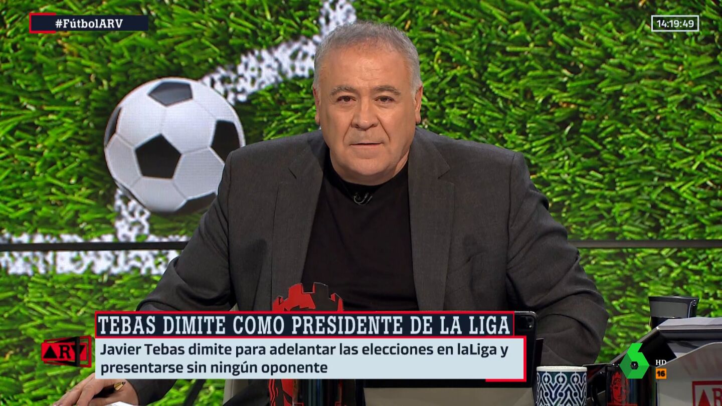 El presentador y director de Al Rojo Vivo ha señalado que Medina Cantalejo, presidente del Comité Técnico de Árbitros, es uno de los grandes responsables del "desastre arbitral y de la competición futbolística en nuestro país".