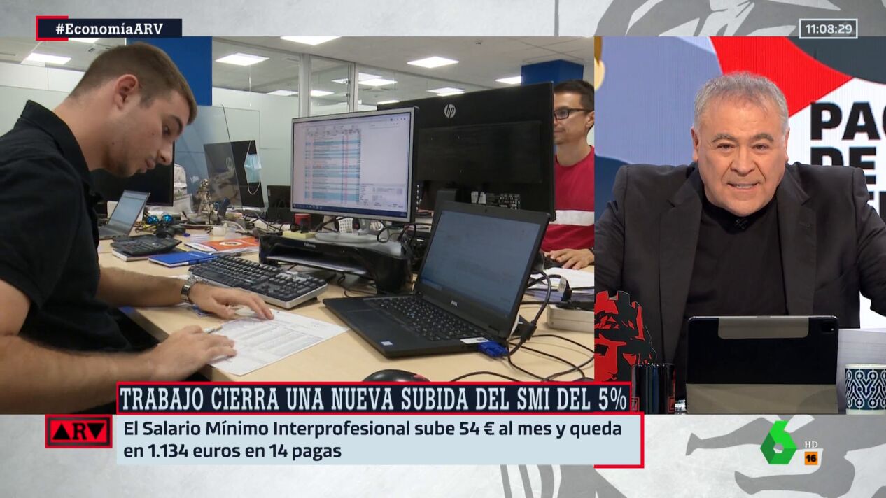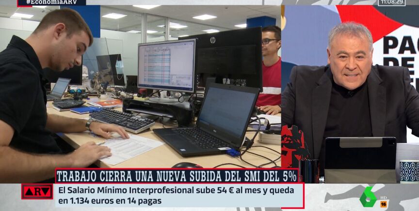 Gobierno y sindicatos han acordado subir el salario mínimo interprofesional (SMI) de 2024 un 5%, esto es, hasta los 1.134 euros. Ante esta noticia, Antonio García Ferreras, presentador de Al Rojo Vivo, se acuerda de aquellos que decían que subir el SMI bajaría el empleo y sería algo muy negativo para el país.