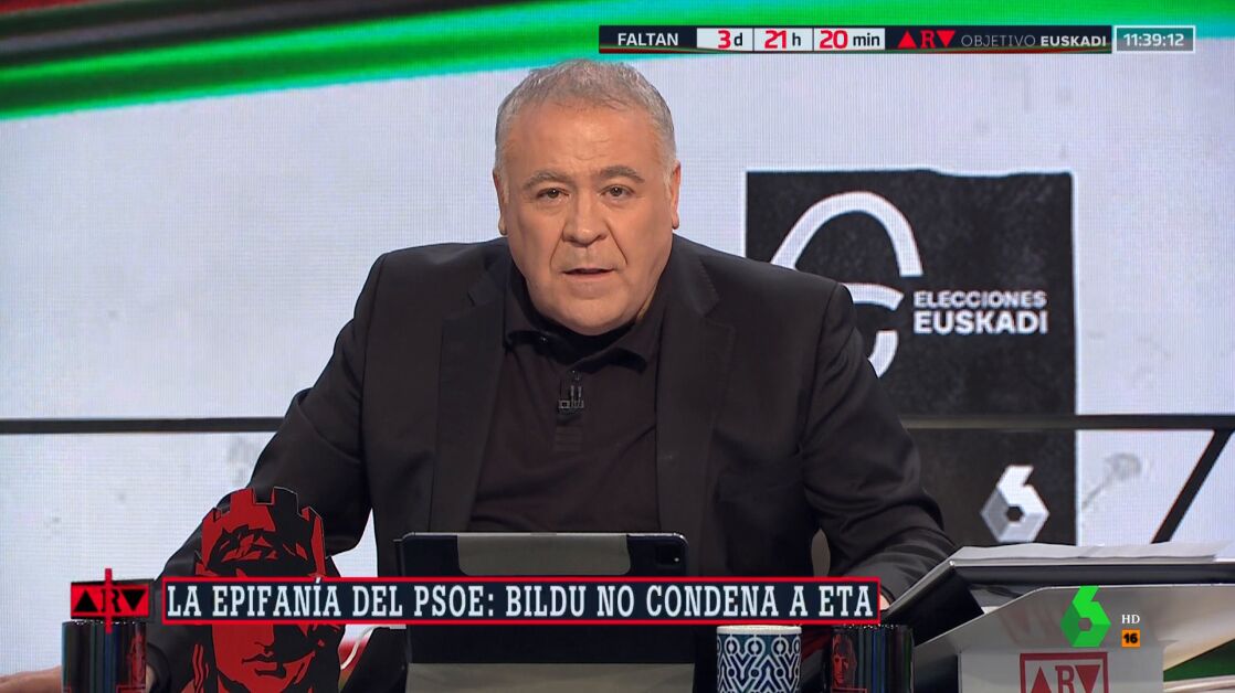 El presentador de Al Rojo Vivo sostiene que "ETA ya no mata y no está presente desde hace tiempo en el País Vasco" pero todavía Bildu no se atreve a condenarlo: su candidato no definió a la banda como "terrorista".