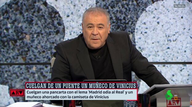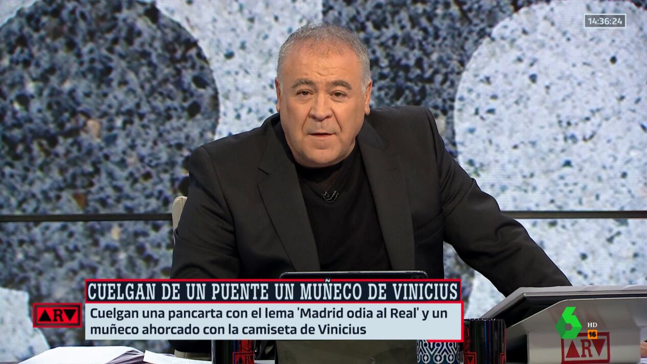 Antonio García Ferreras se ha mostrado tajante tras el nuevo ataque racista que ha sufrido el futbolista Viniciussimulando con un muñeco su ahorcamiento.