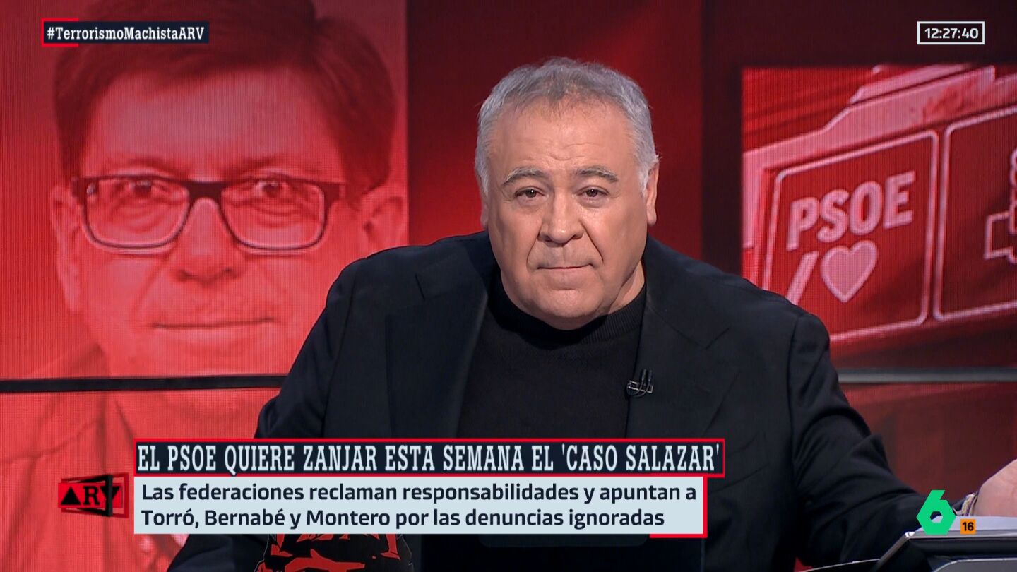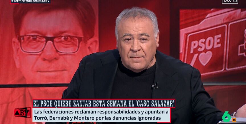 El presentador y director de Al Rojo Vivo ha criticado que Rebeca Torró no se haya pronunciado sobre este asunto, destacando que el 'caso Salazar' es un "escándalo monumental" que tiene indignados a "un montón" de socialistas.