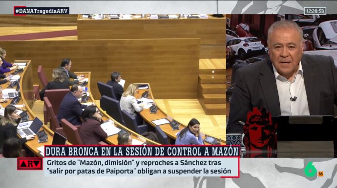 El presentador de Al Rojo Vivo ha destacado que Carlos Mazón, presidente de la Comunidad Valenciana, sigue "arrastrando por el fango" al Partido Popular. "Qué intervención, qué capacidad de insultar a los valencianos cuando lo que hay que hacer es trabajar", ha señalado.