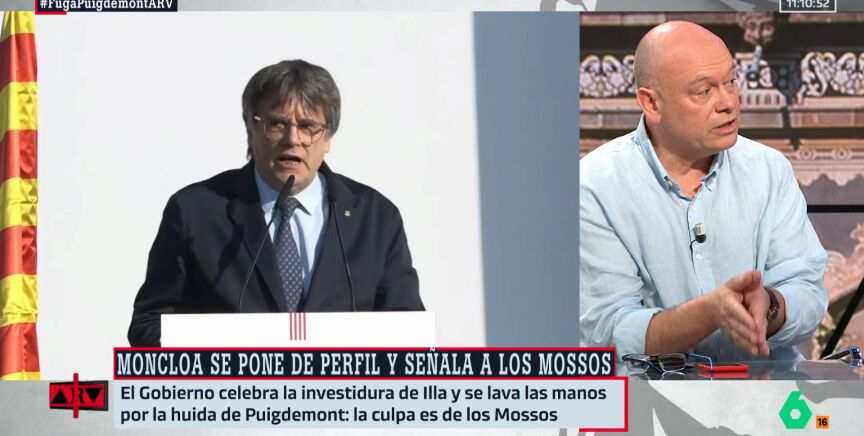 "El juez Llarena ha pedido explicaciones al conseller de Interior y al ministro Marlaska sobre qué han hecho para detener a Puigdemont. El argumento de que es culpa de los Mossos se cae por su propio peso porque es una orden de captura nacional de un fugitivo internacional, y las fronteras no las controlan los Mossos", sostiene el periodista.