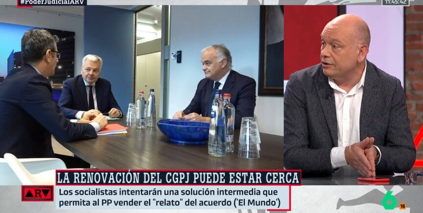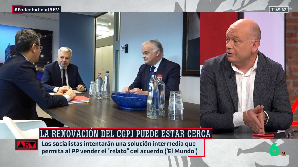 El periodista Gabi Sanz es "excéntrico" a que haya un pacto PP-PSOE para renovar el CGPJ, a pesar de las últimas informaciones en las que este acuerdo podría estar algo más cerca. "Tengo la sensación de que al PP se le lleva haciendo bola esto (el CGPJ) desde hace 5 años. Como a los niños las verduras", afirma el periodista en Al Rojo Vivo. "Tuvo Pablo Casado, anterior líder del PP, la oportunidad y no la aprovechó y ahora Feijóo ha heredado este asunto".