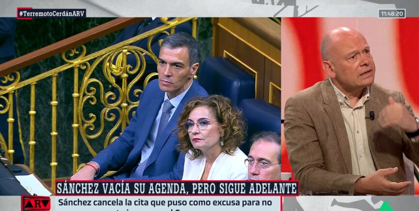 El periodista ha señalado que uno de los problemas a los que se enfrenta Sánchez es que, a raíz del caso Cerdán, se ha "resquebrajado" el muro que estableció en la sesión de investidura en el que estaba el Gobierno y sus socios.