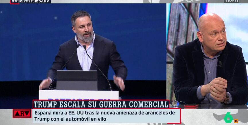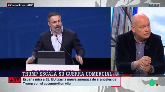 Tras esta explicación del profesor Rodríguez, y tras conocer que Trump ha impuesto aranceles del 25% al acero y al aluminio, Gabi Sanz señala que "lo paradójico de esto es que estos señores [de Vox] se han hartado este fin de semana de pasear banderas y pulseritas de España y hay que decir que esto [los aranceles de Trump] destroza el mercado del acero español, que vende mil millones a EEUU y nos supondría 250 millones más de costo".