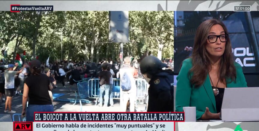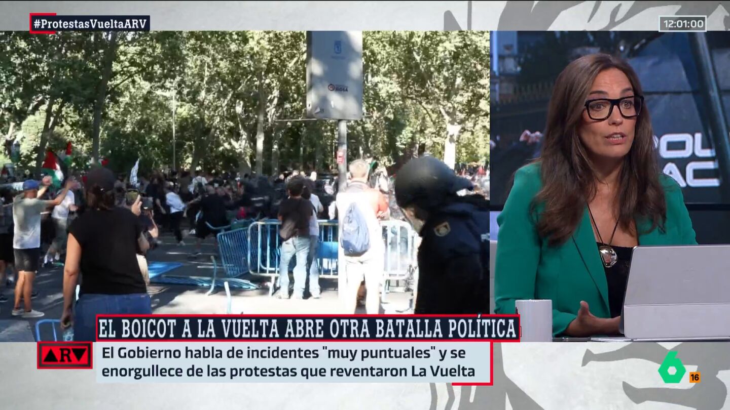La periodista ha criticado las declaraciones de Ayuso sobre las protestas en La Vuelta. Además, ha tachado de "negligencia" la actitud del Gobierno después de que tuviese que cancelarse el final de este evento deportivo.