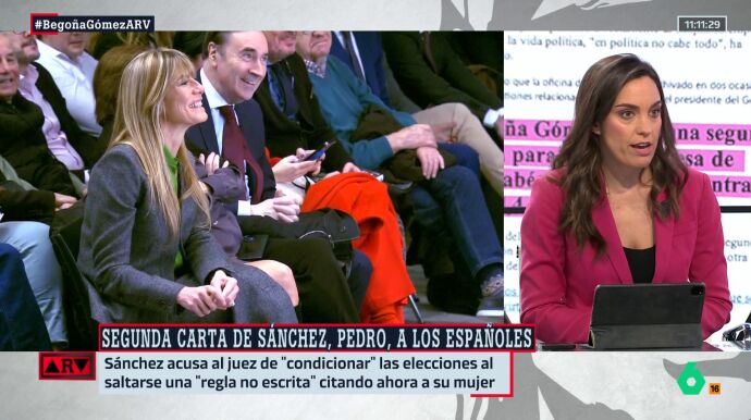 La periodista ha confesado que le produce extrañeza que el presidente del Gobierno "normalice comunicarse a través de cartas unilaterales" no respondiendo a preguntas que puedan hacerle los periodistas para que pueda dar más explicaciones de las que está dando "con este género epistolar" en el que "vuelve a confundir lo privado con lo público".