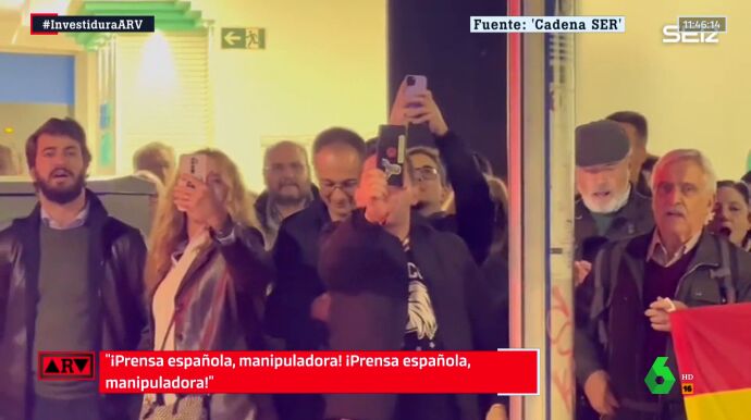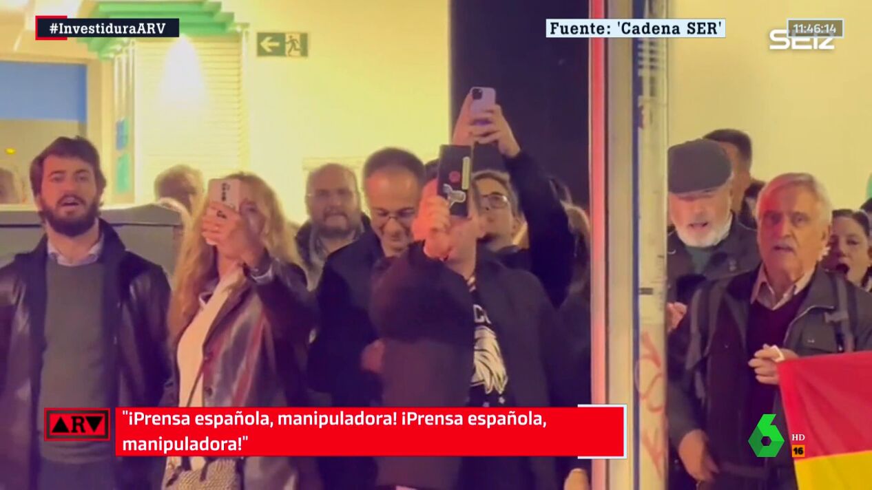 Vox continúa incendiando las calles y atacando a la prensa. El propio vicepresidente de la Junta de Castilla y León, Juan García-Gallardo, ha participado en los últimos días en las protestas contra la sede del PSOE en Valladolid. Este jueves, tras la investidura de Sánchez, repetía su presencia llegando a sumarse a los gritos que coreaban los manifestantes.
