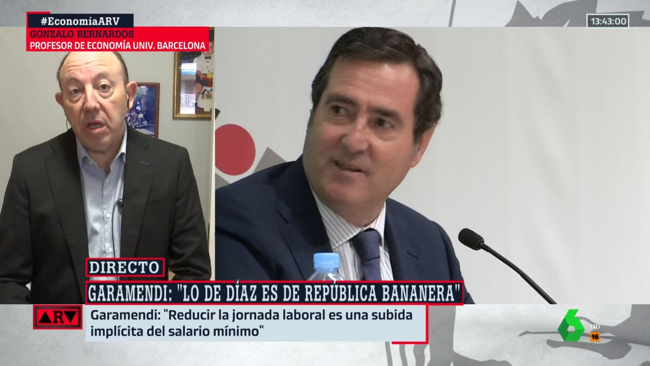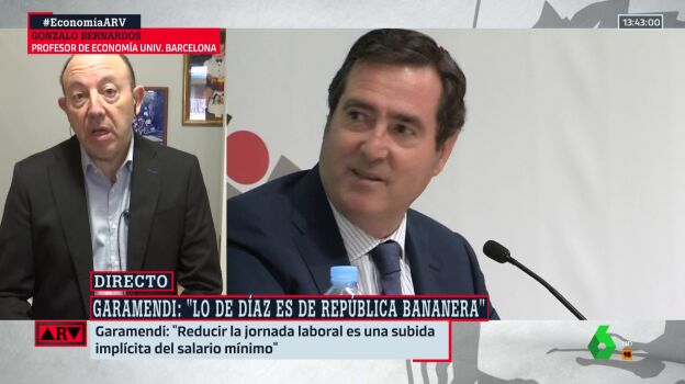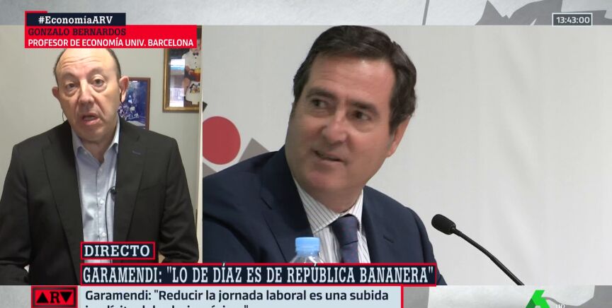 El profesor de Economía, Gonzalo Bernardos asegura en Al Rojo Vivo que le sorprende que Antonio Garamendi, presidente de la CEOE, no conozca a Yolanda Díaz y el programa del actual Gobierno. "Lo que está haciendo es una continuidad de lo que ha hecho previamente", añade en directo. Así, considera que la posición de Garamendi tiene que ver más con una posición política contra el Gobierno.