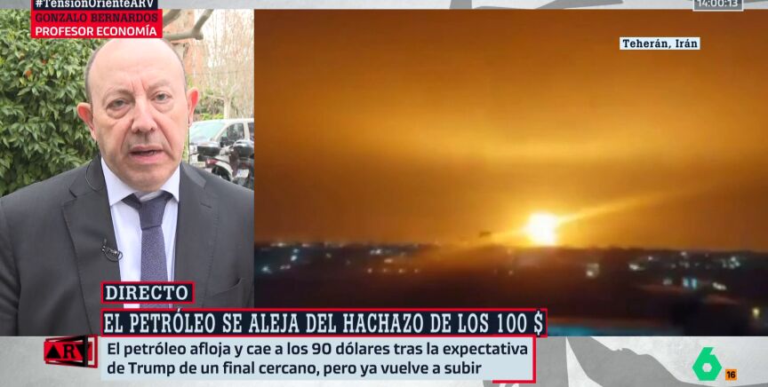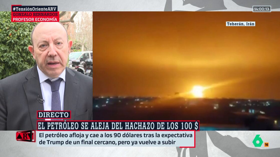 El profesor de economía Gonzalo Bernardos ha analizado en Al Rojo Vivo el impacto económico del conflicto con Irán con un diagnóstico contundente: "Ha llegado la era de la incertidumbre. Todo aquello que creíamos que no podía pasar, ahora puede suceder", ha advertido al comenzar su análisis del nuevo escenario económico internacional.