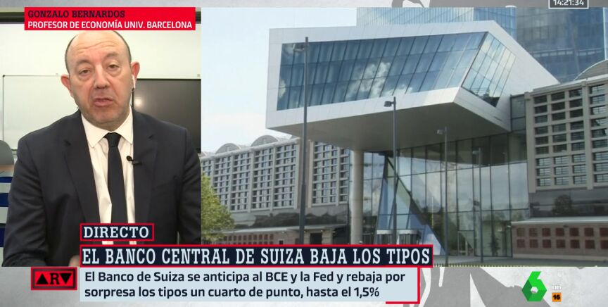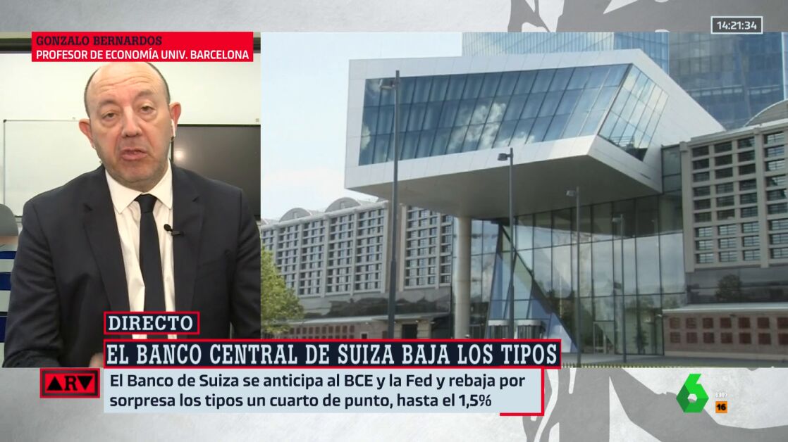 El Banco de Suiza es el único que se ha desmarcado al bajar los tipos de interés. El economista Gonzalo Bernardos, profesor de Economía de la Universidad de Barcelona explica que el Banco Central Europeo (BCE) es siempre lento.