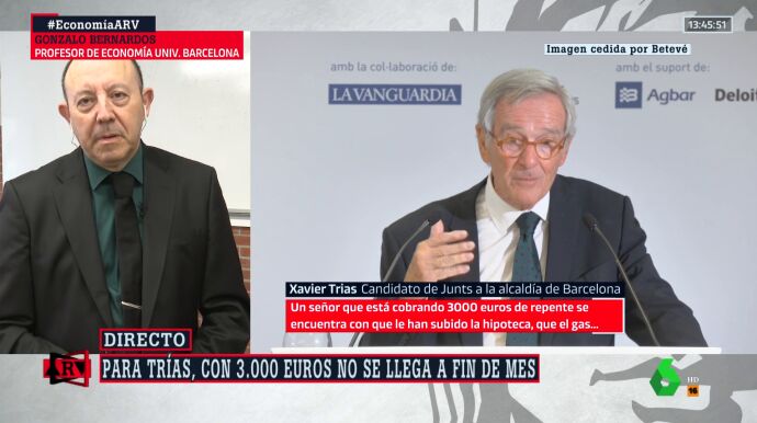 Unas palabras que el economista Gonzalo Bernardos no le "sorprenden" porque "JxCat es un partido de derechas, burgués y Trias responde a la más alta burguesía catalana". "Él está preocupado por los que ganan más de 3.000 euros mientras que la inmensa mayoría de los españoles está preocupada porque no llega a esos 3.000 euros", añade Bernardos.