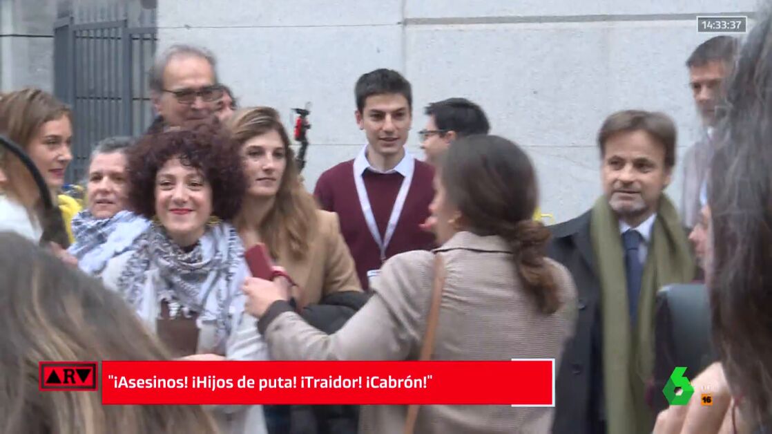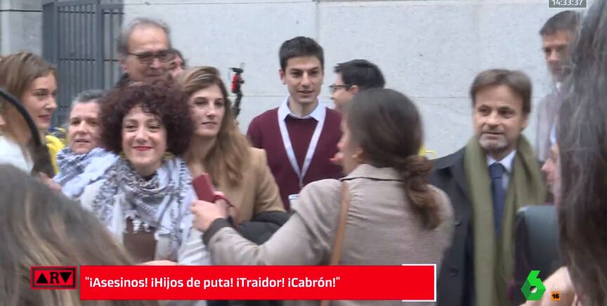 "Traidor", "cabrón" o "hijos de puta", han sido algunas de las frases que han gritado un pequeño grupo de manifestantes tanto a ellos como a Aina Vidal a su llegada al Congreso de los Diputados para acudir al debate de investidura.