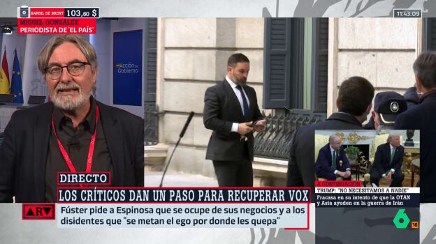 Miguel González, de 'El País', uno de los periodistas que más sabe del 'mundo Vox', analiza en Al Rojo Vivo, con Antonio García Ferreras, toda la guerra interna que tiene ahora mismo el partido de ultraderecha, donde a su líder le crecen los problemas.