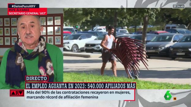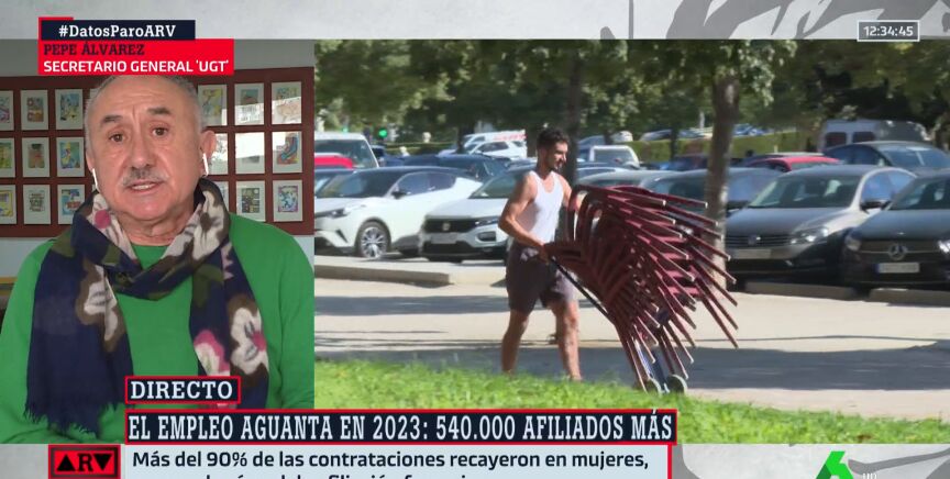 El secretario general de UGT, Pepe Álvarez, cree que los datos del paro, que ha bajado un 4,6% en 2023, con dignos de ser celebrados. Aún así, señala que es importante centrarse en los problemas que quedan pendientes, como el de la contratación indefinida.