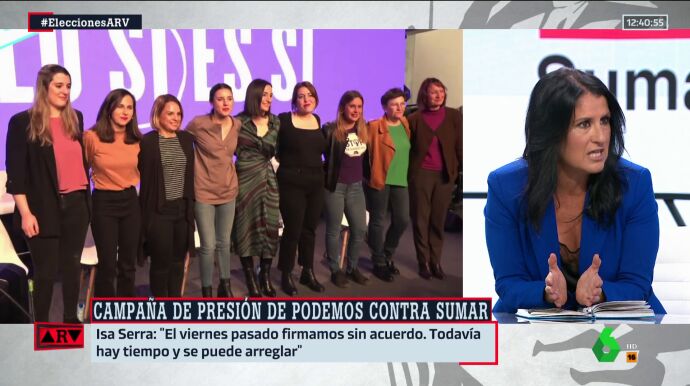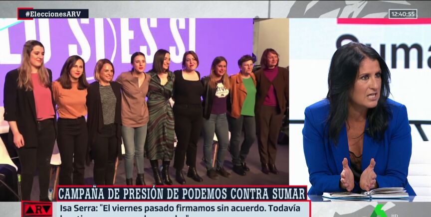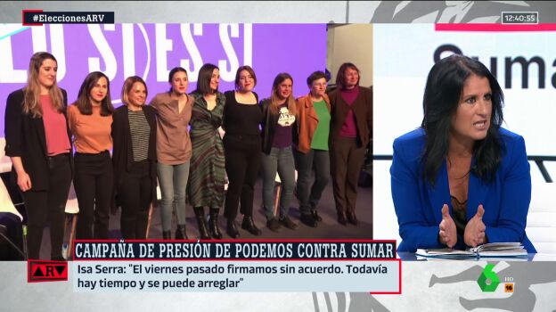 "La actitud de Podemos resta a Sumar". La periodista ha indicado en Al Rojo Vivo que las discrepancias que han hecho públicas no van a beneficiarles de cara a las elecciones generales del 23 de julio.