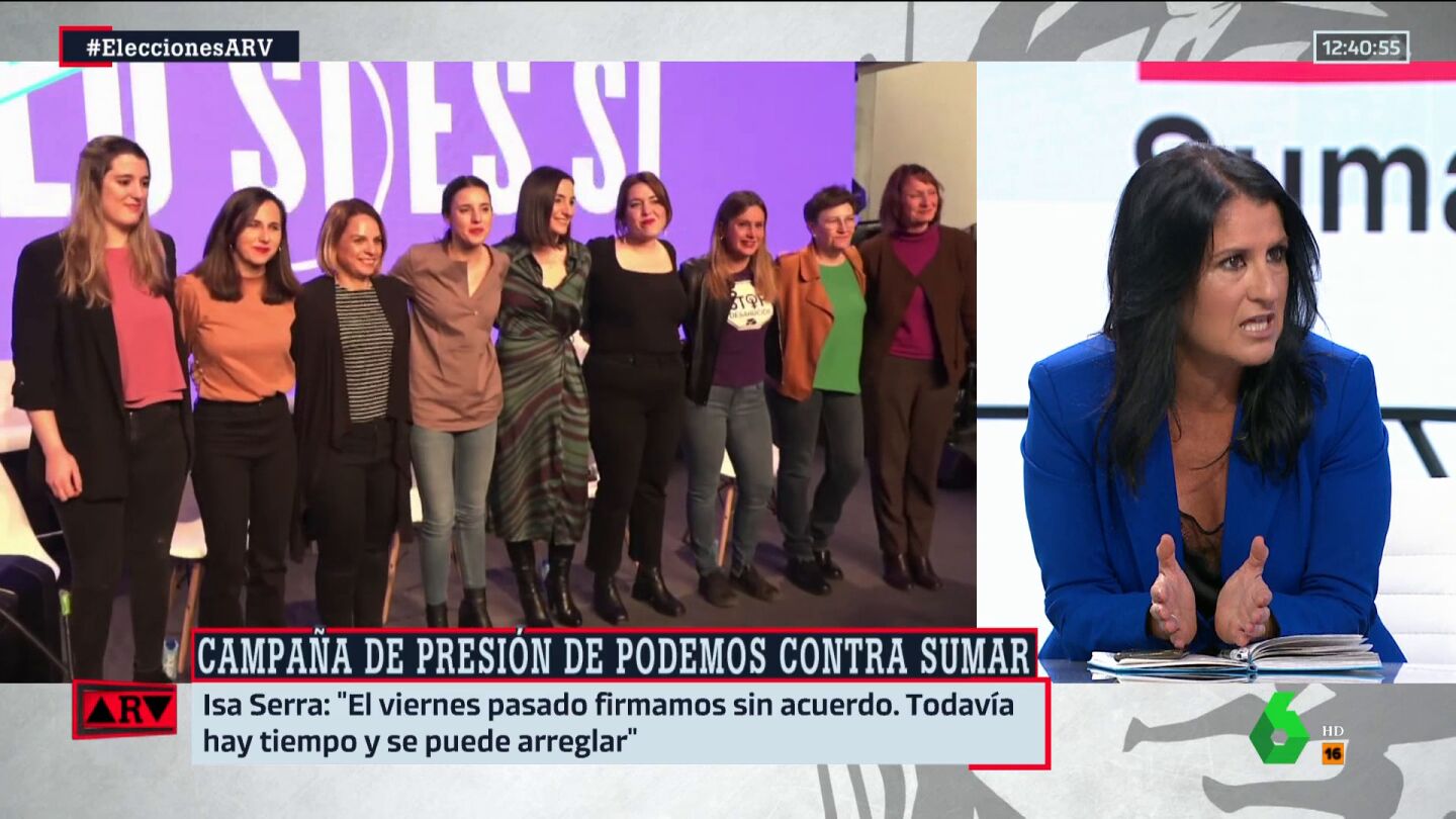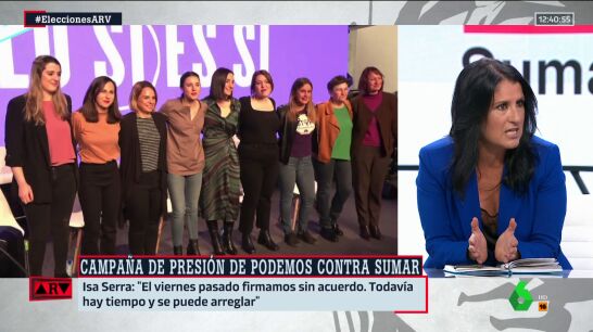 "La actitud de Podemos resta a Sumar", ha asegurado. La periodista ha indicado que la formación no puede aceptar sumarse a un proyecto con el cual tiene discrepancias, señalando que deberían apartarse y presentarse por separado si no están de acuerdo. "Lo que no puedes hacer es sumarte a un proyecto e intentar derribarlo desde el minuto uno".