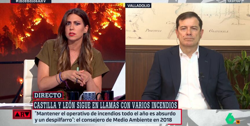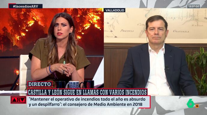 El máximo responsable autonómico ha asegurado que no era posible llegar a tiempo al puesto de mando por encontrarse "a diez horas de coche". Sin embargo, Inés García, presentadora de Al Rojo Vivo, ha criticado su ausencia asegurando que "no todos los días se quema un paraje natural como Las Médulas".