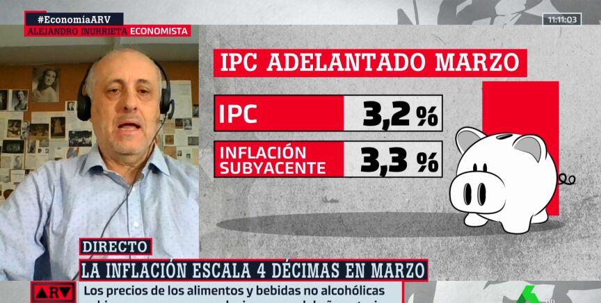 El IPC subió un 0,8% en marzo en relación al mes anterior y elevó cuatro décimas su tasa interanual, hasta el 3,2%, debido al encarecimiento de la electricidad y los carburantes. El economista Alejandro Inurrieta analiza estos datos.