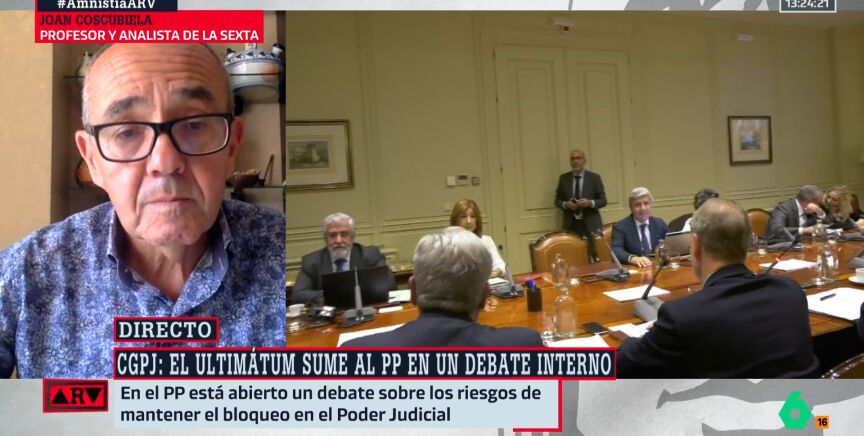 Pese a ello, el profesor y analista se ha mostrado "pesimista" con que este aviso del Gobierno acabe resultado en una respuesta del Partido Popular: "Yo soy pesimista porque el PP ha estado bloqueando tanto tiempo el CGPJ, no veo incentivo para que ahora cambie de posición".