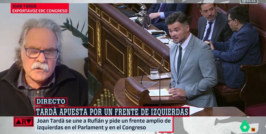 Joan Tardà, exportavoz de ERC en el Congreso de los Diputados, explica en Al Rojo Vivo la necesidad de hacer ese "frente común de izquierdas" en Cataluña que podría ser también un "espejo" para otras formaciones de izquierda en España.
