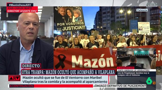 El director de Levante-EMV, Joan-Carles Martí, informa sobre la revelación de su periódico: Carlos Mazón no se dirigió al Palau tras su comida con Maribel Vilaplana en 'El Ventorro', como dijo, sino que la acompañó a un párking cercano. En el vídeo, todos los detalles.
