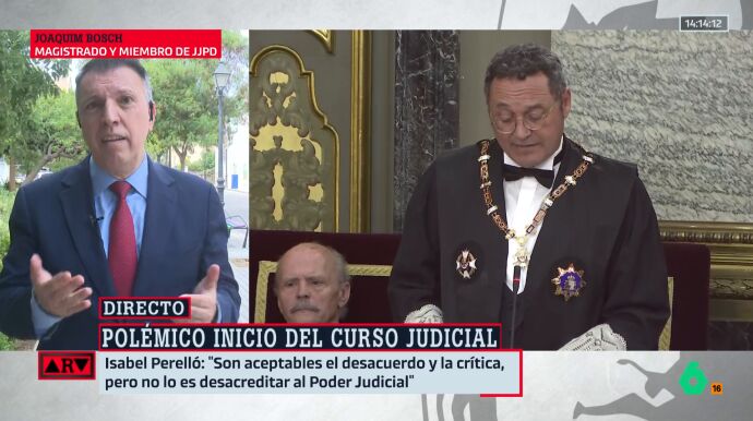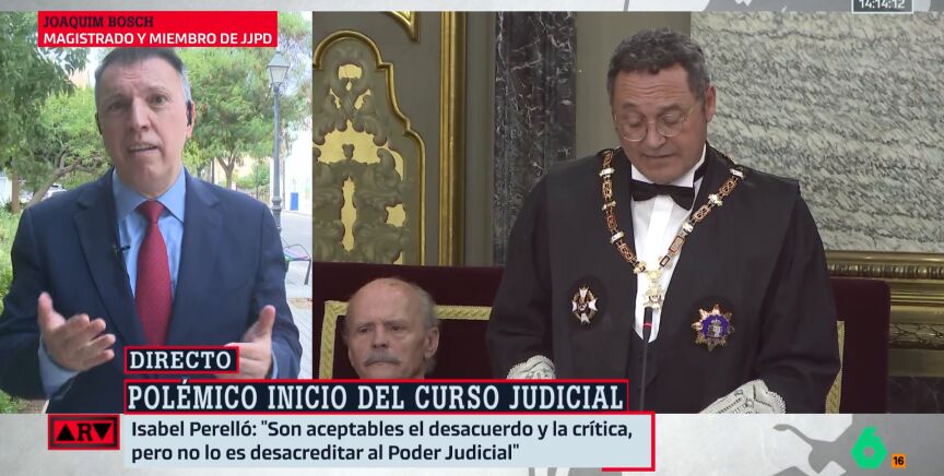 En cuanto a la polémica de si el fiscal general de Estado, Álvaro García Ortiz, debería estar o no en el acto de apertura del Año Judicial (algunos jueces y fiscales pidieron que no asistiese al acto, a pesar de defender su presunción de inocencia), Joaquim Bosch, magistrado y miembro de Juezas y Jueces para la Democracia (JJpD), tiene clara su opinión: "Está obligado a estar porque así lo dice la ley".