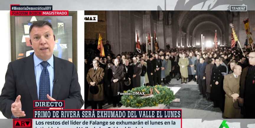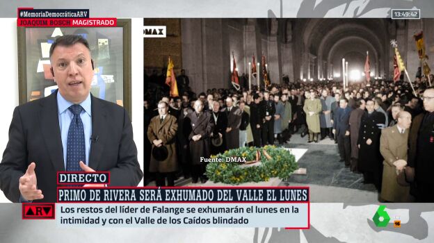 "Me parece que es una exhumación obligatoria porque la situación actual de la tumba de Primo de Rivera está prohibida por la ley de Memoria Democrática", ha manifestado Joaquim Bosch en el programa Al Rojo Vivo. "Su ubicación en el Valle de Cuelgamuros se utilizó como un símbolo de exaltación del golpe de Estado de 1936", ha recordado el magistrado.