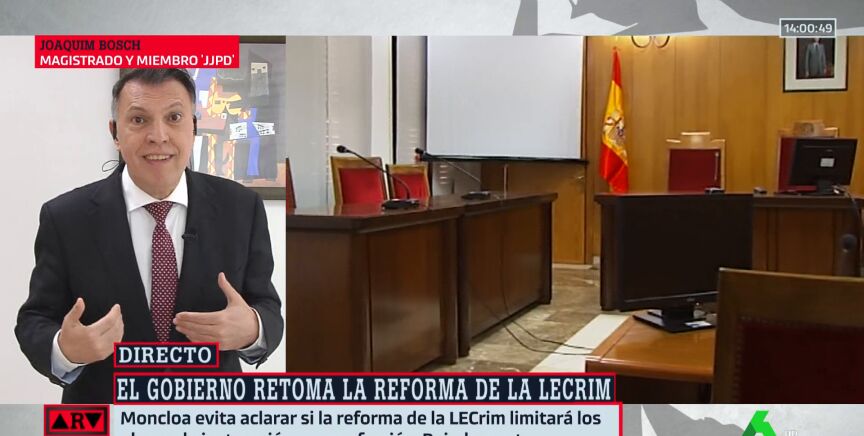 Joaquim Bosch ha explicado en Al Rojo Vivo por qué cree que es importante que se reforme la ley de Enjuiciamiento Criminal (LECrim) tal y como ha propuesto el PSOE, que no ha querido aclarar si limitará los plazos de instrucción como ofreció Junts.