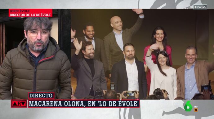 El periodista Jordi Évole ha entrevistado a la expolítica de Vox Macarena Olona en Lo de Évole. Tras su charla, Évole cree que este programa puede "animar a más de uno a abrir una instrucción y hacer investigaciones dentro de Vox". La razón, como el periodista ha desvelado en Al Rojo Vivo, es porque Olona "hace insinuaciones de corrupción dentro de Vox".